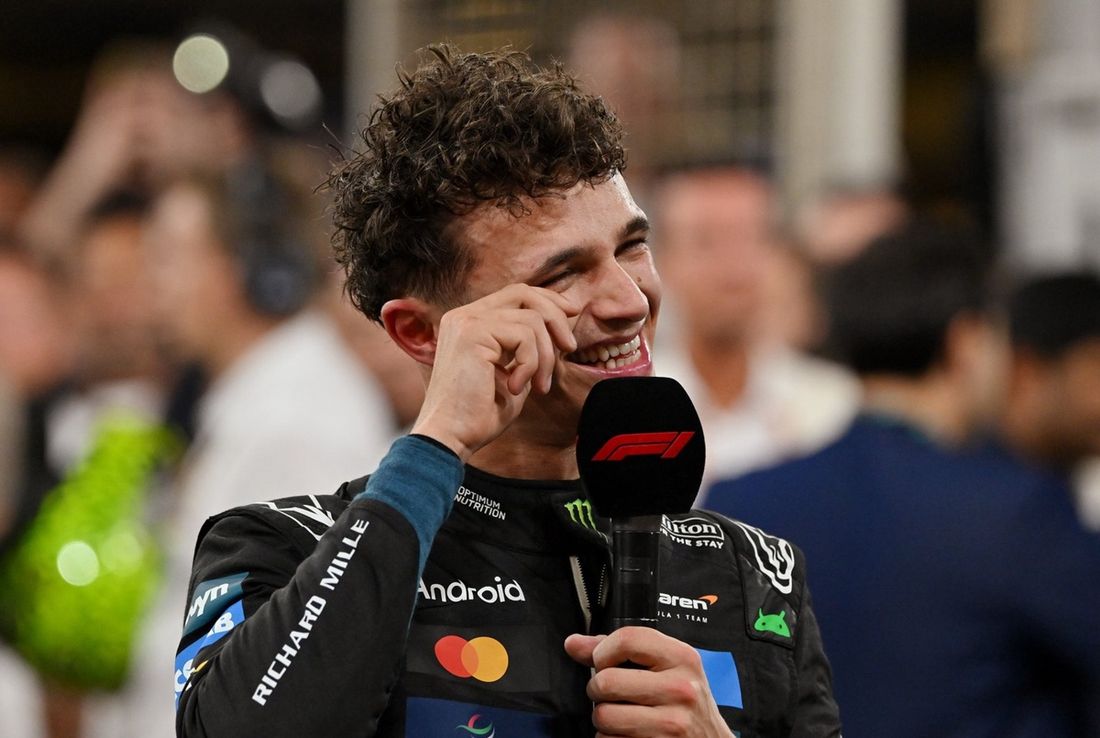 Grazie al terzo posto nel Gran Premio di Abu Dhabi, il pilota della McLaren si è laureato campione del mondo di Formula 1 per la prima volta nella sua carriera. Ecco le immagini più belle della grande festa di Lando.